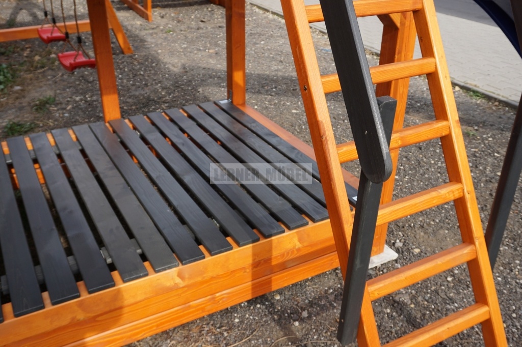 Tartós masszív szerkezet,erősített anyagból,időjárásálló nemes jegenyefenyőből. Kezelés 3 x festéssel az ellenállóképesség növelése érdekében.Kézzel csiszolt ,finoman megmunkált felületek.Kényelmi szempontokat figyelembe véve lett kialakítva.A korlátokon könyöklő került kilakításra.
